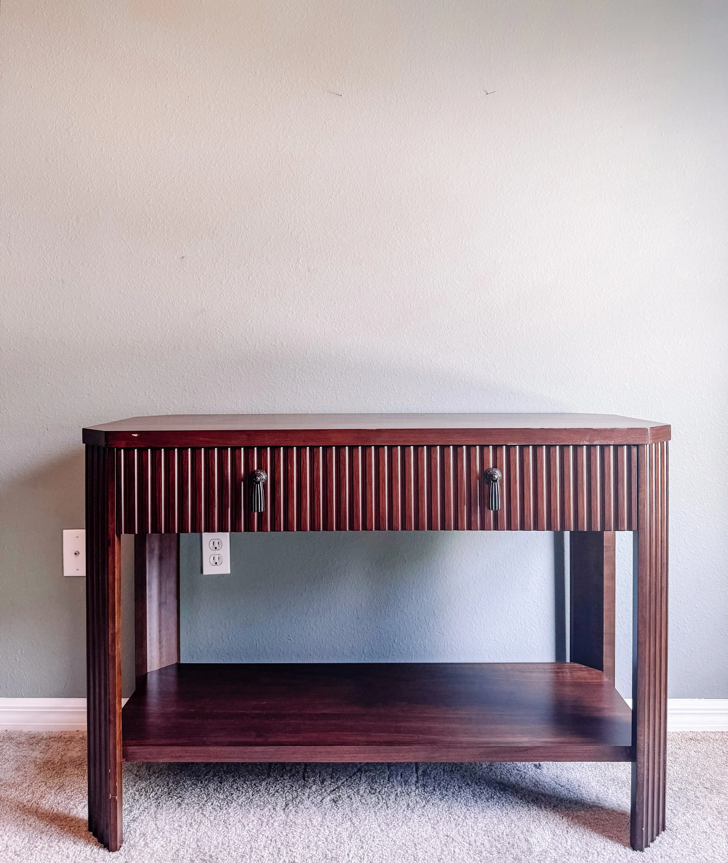 I went to target and found this beautiful Console table on Clearance for $125, I didn’t buy then thinking I had no place to put it. I came home and my husband mentioned he wants a TV on the wall to show slide shows when a Client comes and darn the table was perfect. So I Went a few days later and to my surprise the table was still there and it actually scanned for $75 instead, the employee had to double check the price lol. Originally was $250..talk about an amazing find ! It was perfect for. the office!